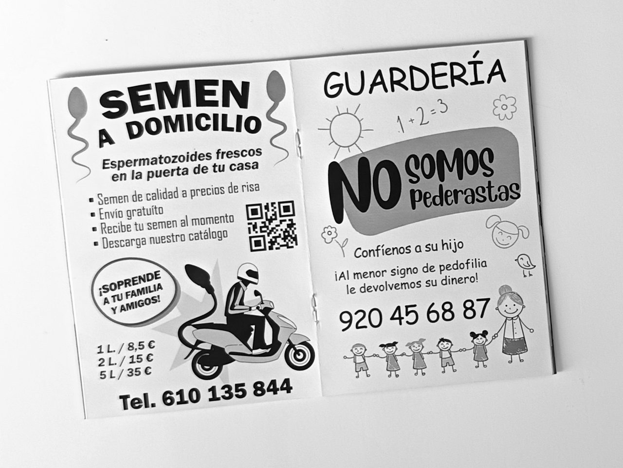Este proyecto recoge una serie de subnorflyers que me he inventado inspirandome en las clásicas publicidades callejeras. Un total de 24 flyers con propuestas absurdas para regalar a tus abuelos o adornar tu barrio.