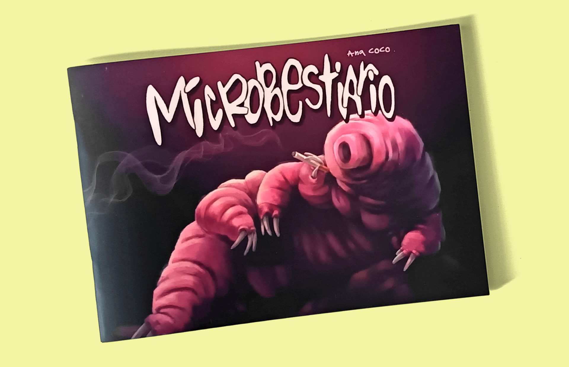Microbestiario es un cómic que narra la vida de diminutas especies microscópicas. Se compone de tres historias: la primera es la de Mamen, un osito de agua que es una señora mayor cuyo único deseo en la vida es poder ver MasterChef tranquila mientras se fuma sus pitis. La segunda gira en torno a una tenia criptobro, que nos cuenta cómo pasó de ser un don nadie a convertirse en un triunfador. Y, por último, se presenta una historia de amor entre dos ácaros que buscan un lugar donde vivir: su hogar soñado sería una alfombra, pero su presupuesto es limitado. Todas estas historias se cruzan entre sí dentro de estos micromundos, mostrando lo absurdo, lo entrañable y lo cutre de la vida vista a escala microscópica.